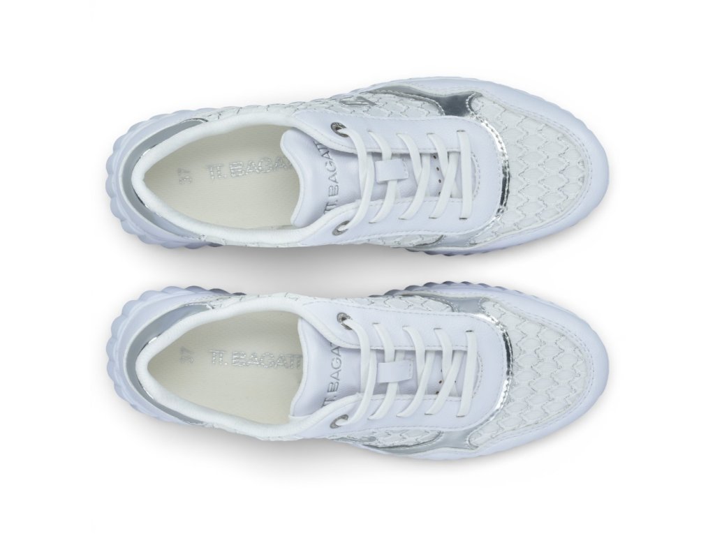 Dámské tenisky Bugatti Carini v bílo-stříbrném provedení zaujmou moderním designem a lehkou sportovní podrážkou. Pohodlná konstrukce s vyjímatelnou stélkou je ideální pro každodenní nošení.
