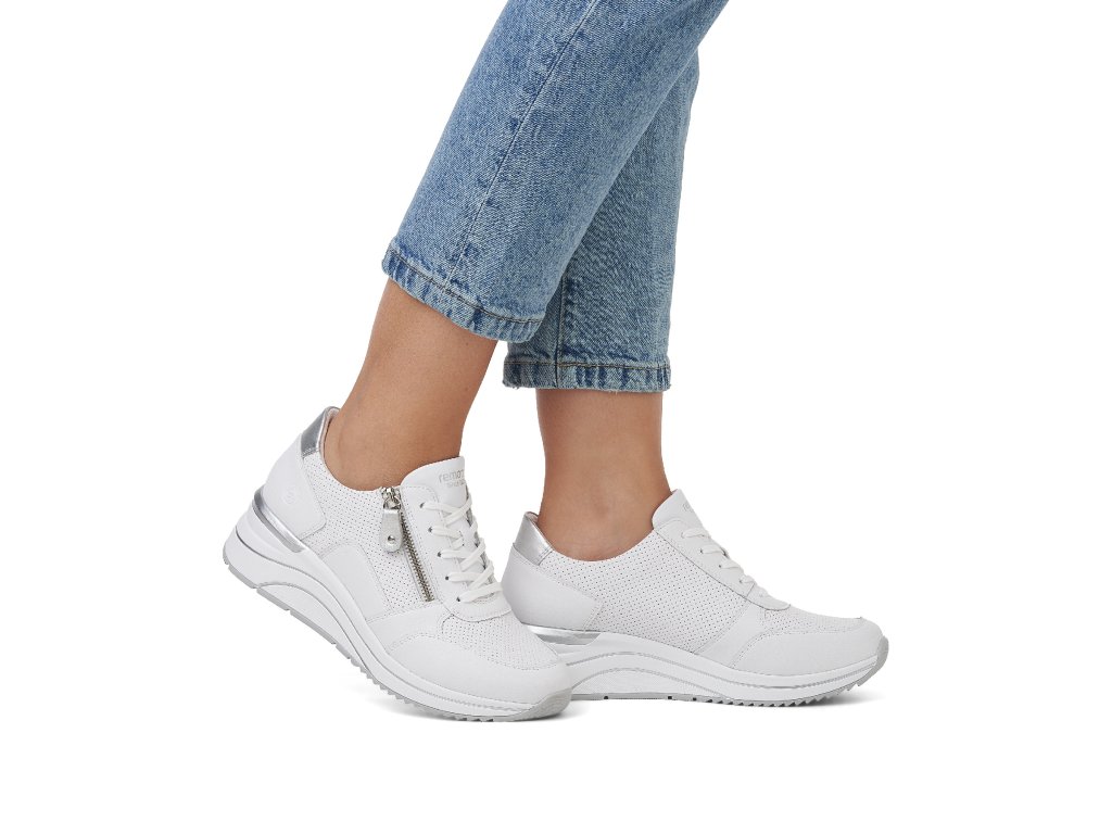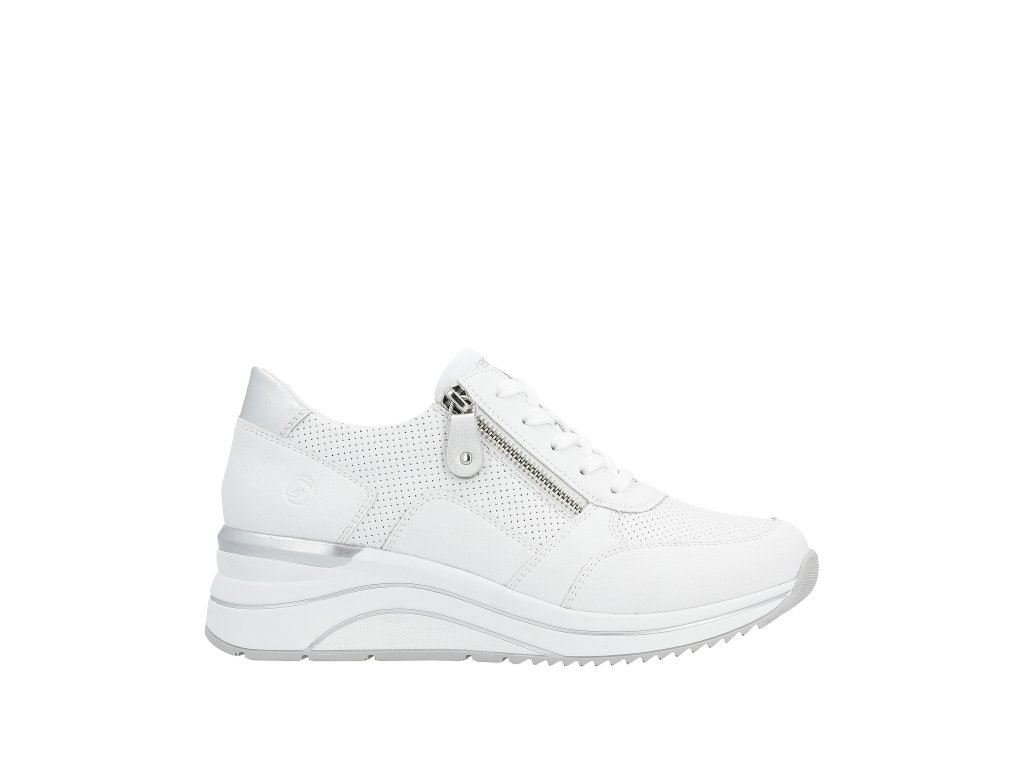Dámské tenisky Remonte D0T06-80 v bílé barvě s šedými detaily kombinují moderní design a špičkový komfort. Lehká technologie Lite n Soft, vyjímatelná stélka a praktický zip zajistí pohodlí po celý den.
