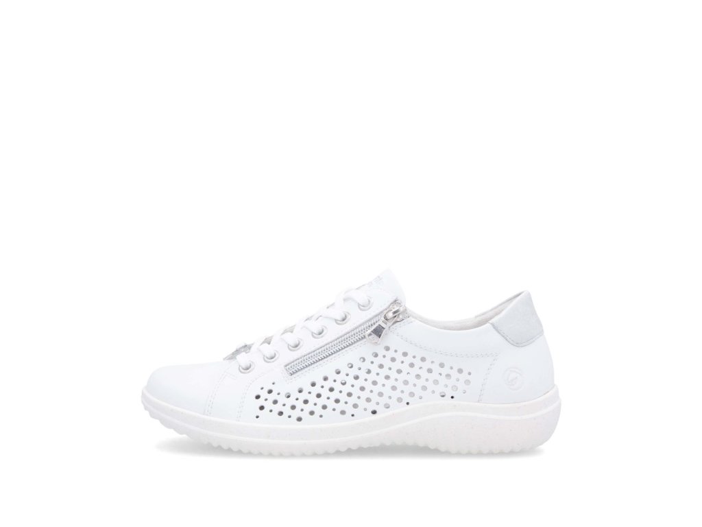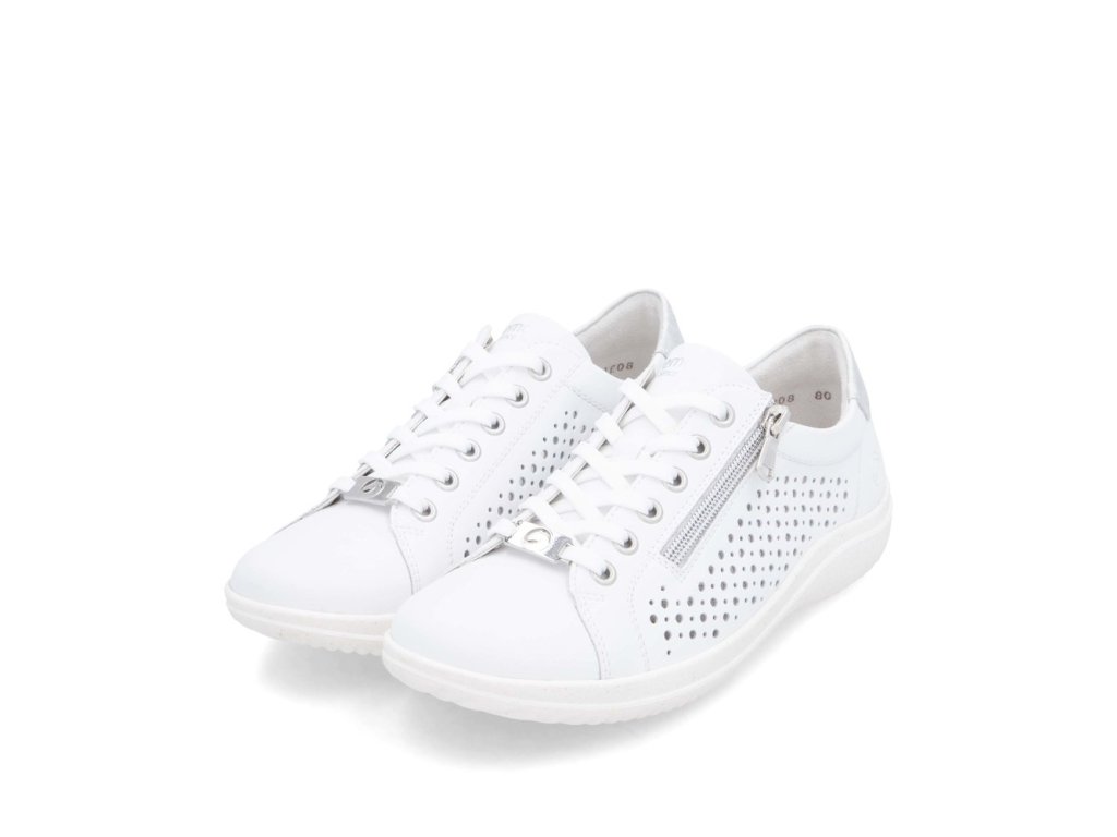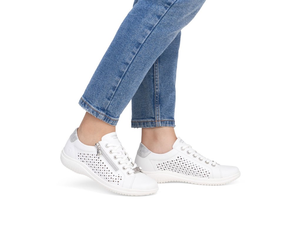 Dámské kožené tenisky Remonte D1E08-80 v bílém provedení kombinují elegantní vzhled s maximálním pohodlím. Perforovaný svršek, zapínání na šněrování i zip a technologie Lite n Soft zajišťují komfort po celý den.