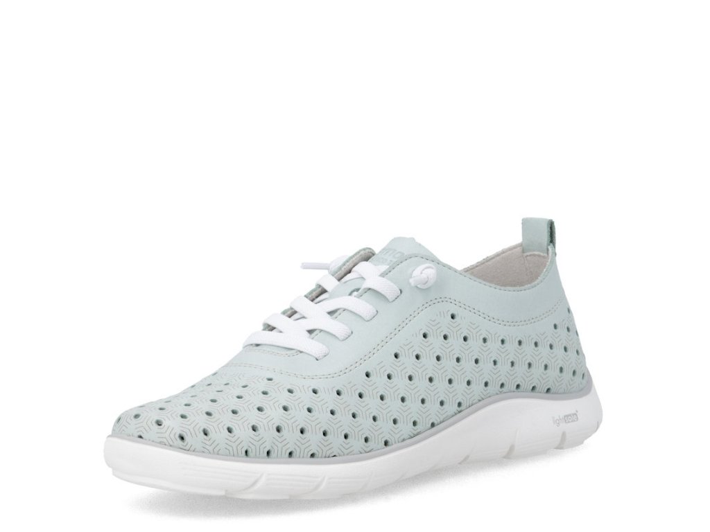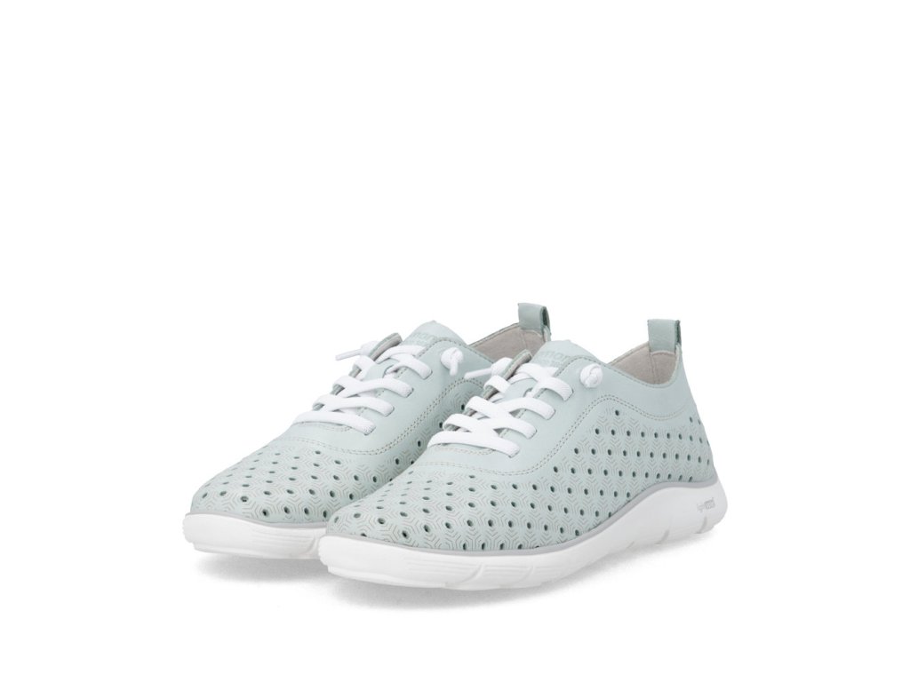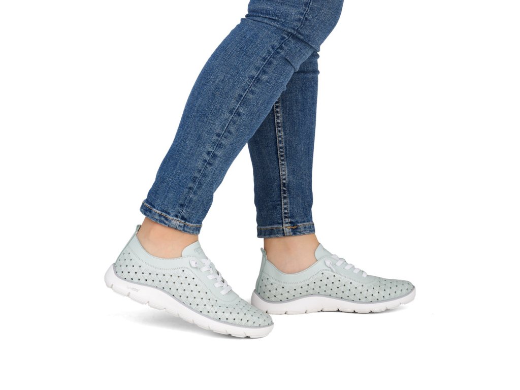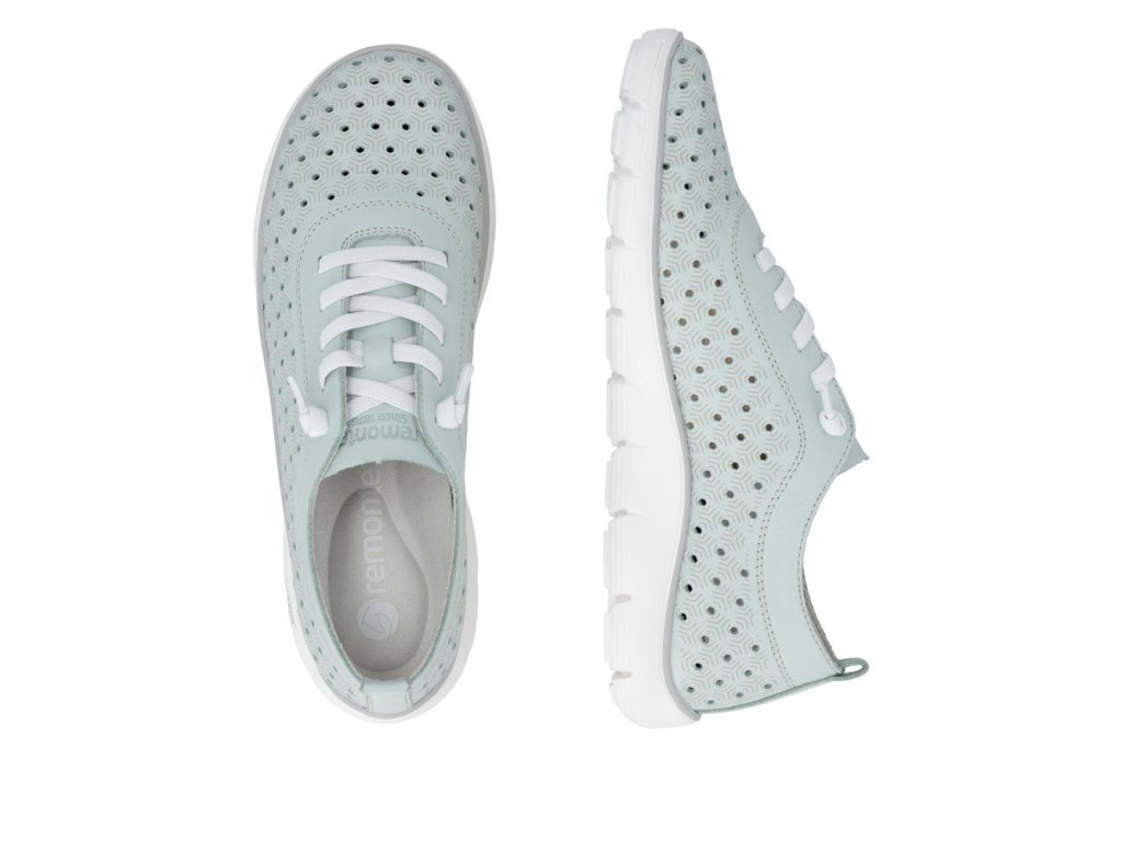 Dámské tenisky Remonte D3G03-52 v mentolově zeleném provedení zaujmou perforovaným koženým svrškem a lehkým sportovním designem. Technologie Lite n Soft, vyjímatelná měkká stélka a komfortní šířka G zajistí pohodlí při každodenním nošení.