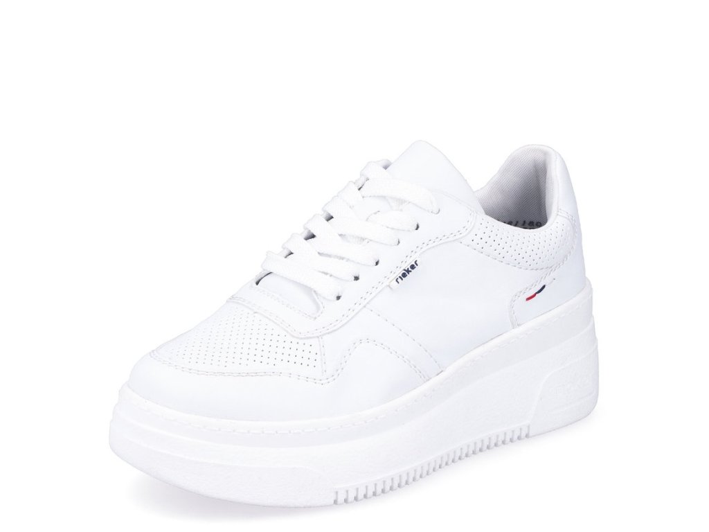 Dámské tenisky Rieker M7811-80 v čistě bílém provedení kombinují moderní vzhled s pohodlnou klínovou podešví. Lehká konstrukce, vyjímatelná stélka a šněrování zajistí komfort při každodenním nošení ve městě i na cestách.