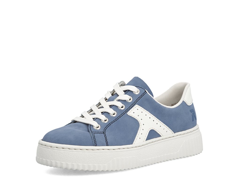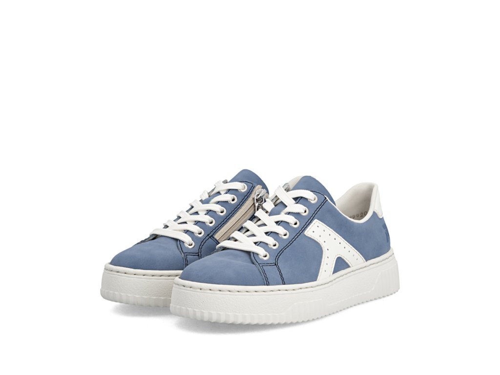 Dámské tenisky Rieker N9920-14 jsou pohodlné sneakers v modro-bílé kombinaci, které se snadno obouvají díky šněrování doplněnému zipem a mají lehce zvýšenou platformu. Hodí se na každodenní nošení, nabídnou stabilitu při chůzi a komfort i při delším stání nebo chození.