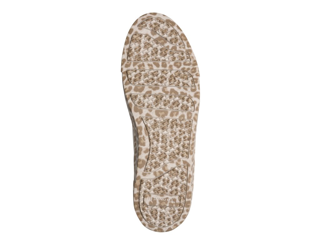 Dámské tenisky Tamaris v odstínu slonové kosti s ikonickým leopardím potiskem na platformové podrážce a šněrováním se saténovými tkaničkami, které dodávají teniskám originalitu a šmrnc.