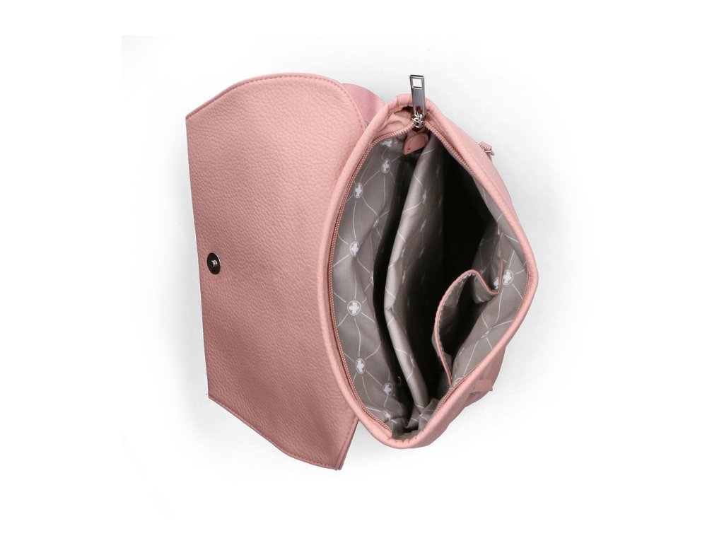 Vnitřek: Vnitřek kabelky je vyrobený z textilního materiálu s ukládacím prostorem na telefon a dalšími přihrádkami.