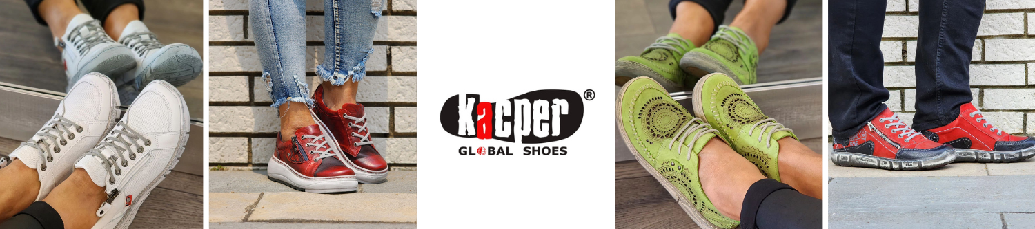 Kacper je polský výrobce obuvi, který je známý pro svůj originální design a pohodlí. Obuv Kacper se vyznačuje jedinečným, často hravým a barevným designem, který oslovuje zejména ty, kteří hledají něco netradičního a odlišného. Firma klade důraz na ruční výrobu a využívá kvalitních materiálů, aby zajistila pohodlí a dlouhou životnost svých produktů. Díky svému střihu jsou vhodné na širší nohu a kladívkové prsty.