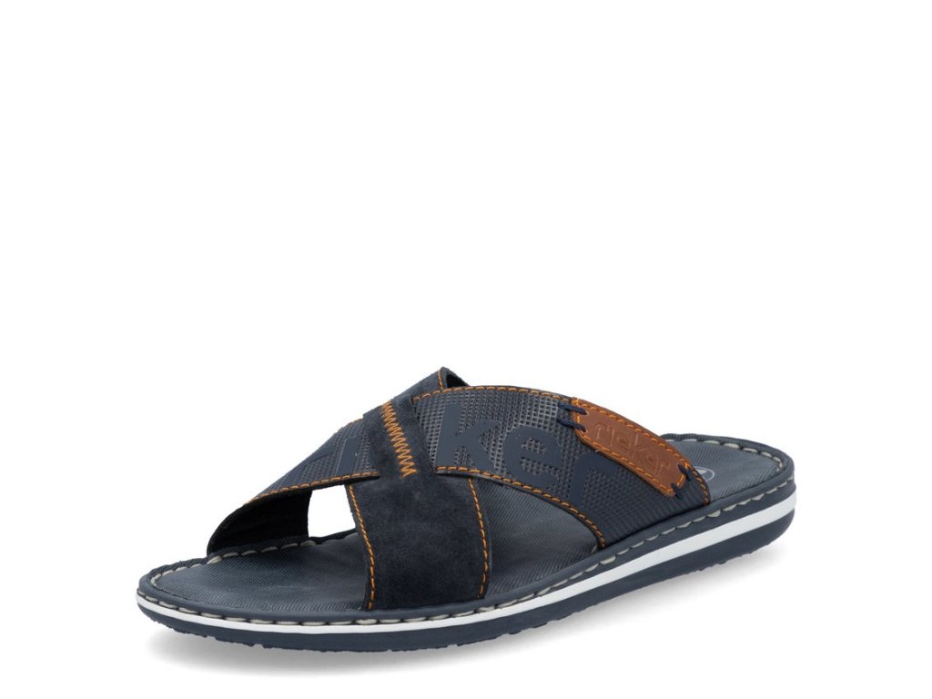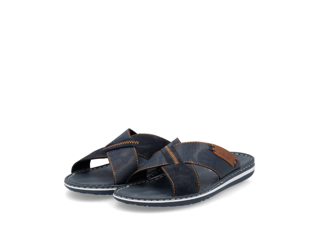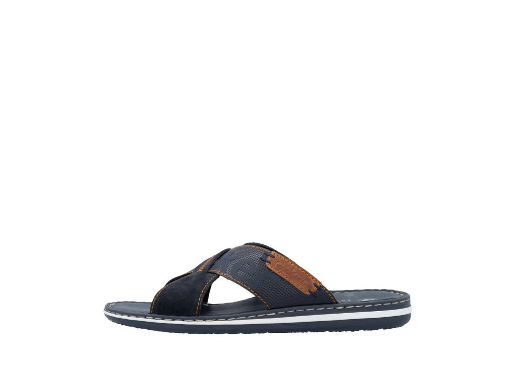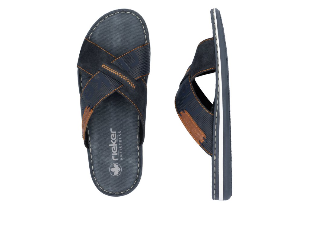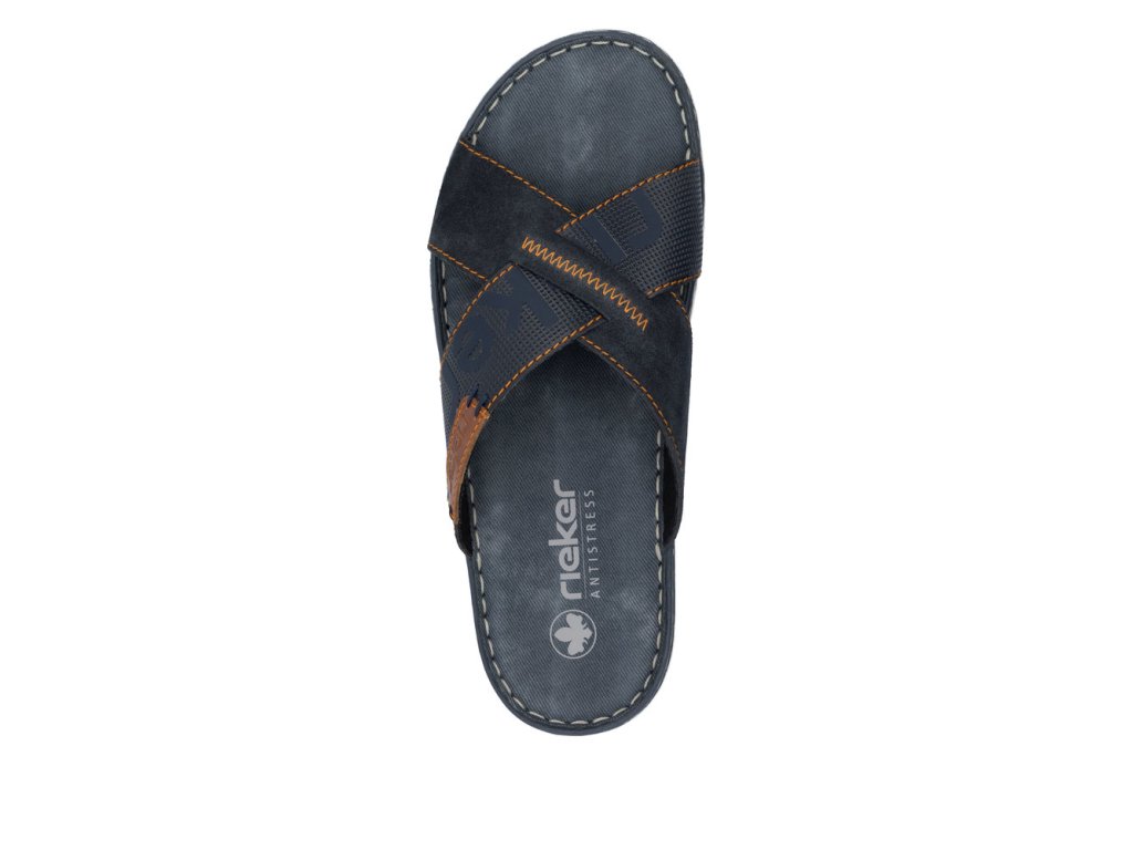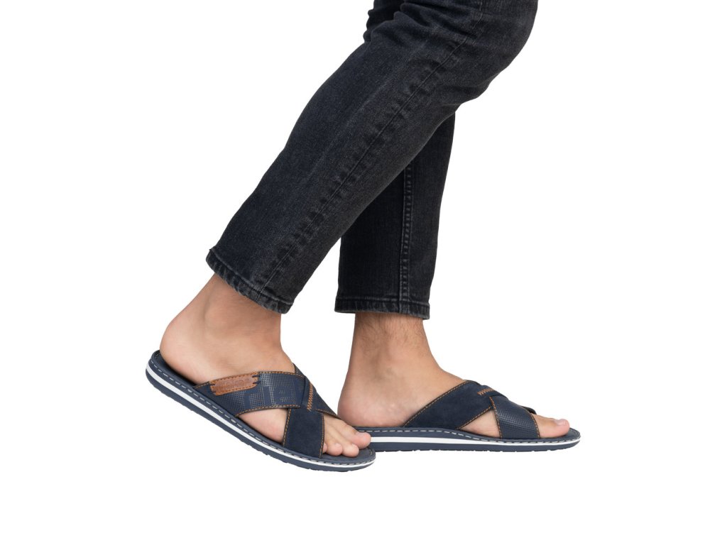 Pánské pantofle Rieker 21098-14 s překříženými pásky přes nárt na pohodlné platformě. Kombinace platformy s vyměkčenými stélkami