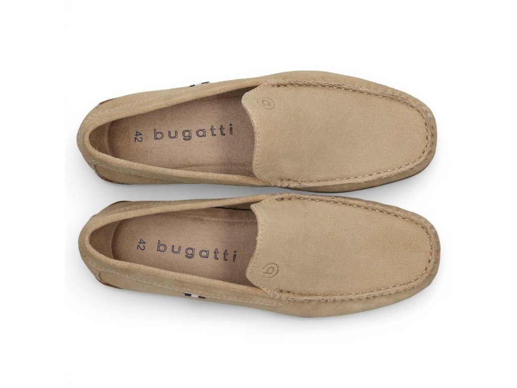 Pánské mokasíny Bugatti béžovém semišovém provedení nabízejí nadčasový letní styl a pohodlný střih. Lehké nazouvací provedení s měkkou podrážkou je ideální do města i na dovolenou.
