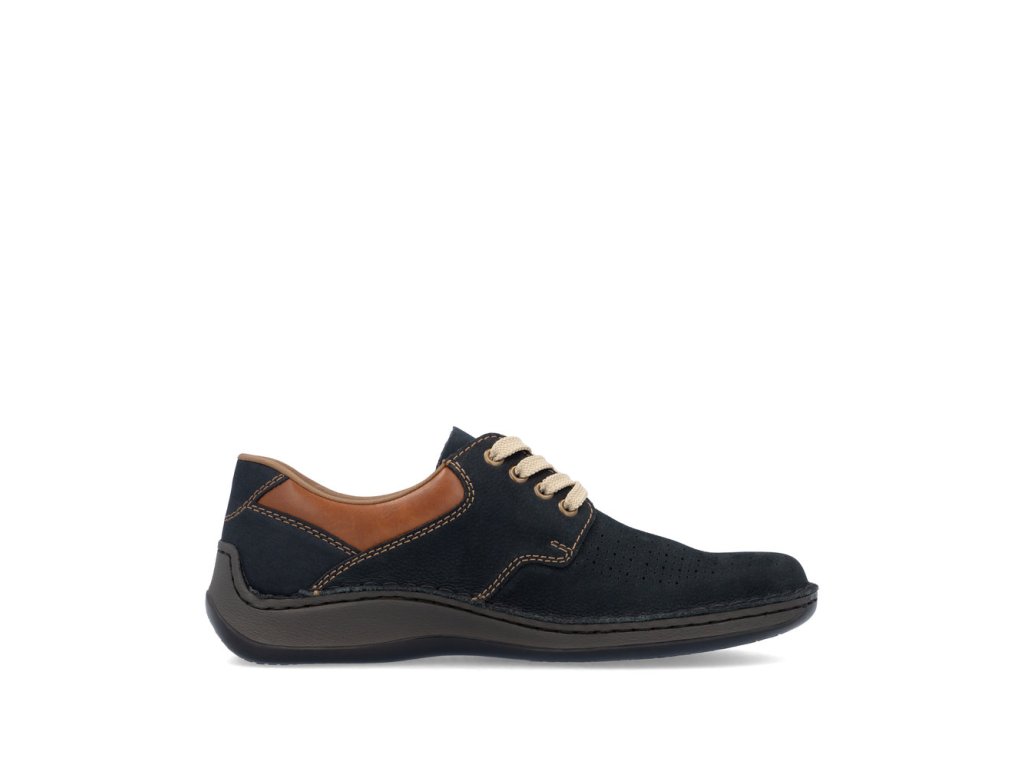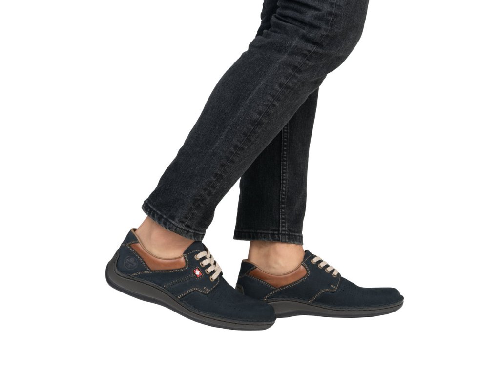 Pánské polobotky Rieker 05207-15 na pohodlné platformě se šněrováním. Díky perforovanému vzoru odvětrávají nohu. Jsou ideální pro každodenní nošení.
