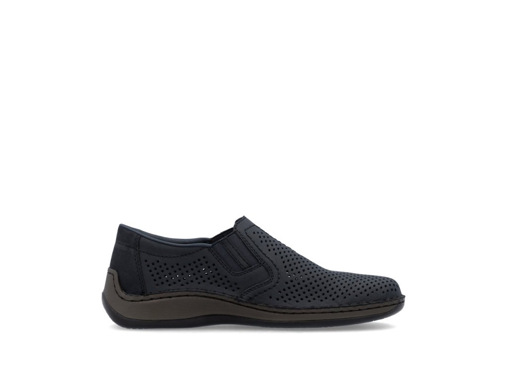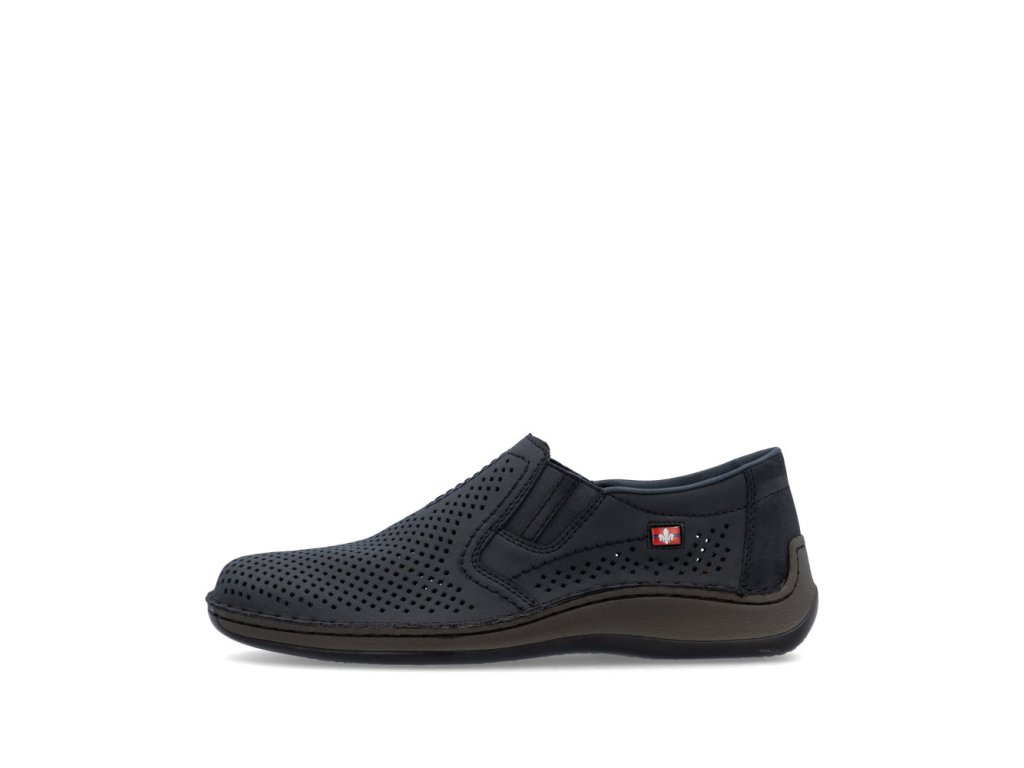 Pánské polobotky Rieker 05297-14 na pohodlné platformě. Díky perforovanému vzoru odvětrávají nohu. Jsou ideální pro každodenní nošení.