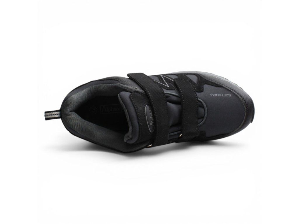Pánské tenisky Alpinex Softshell s pásky na suchý zip a bytelné podešvi vhodné do terénu. Černý vzor je snadno sladitelný. Tenisky jsou vyrobené z nepromokavého Softshellového materiálu. Textilní podšívka zajišťuje pohodlí.