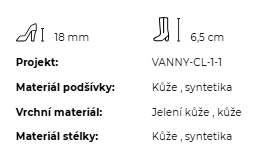 Podošv: Podošev obuvi je s jemným protišmykovým vzorom vyrobená zo syntetického materiálu. Podpätok je vysoký 1,8 cm.