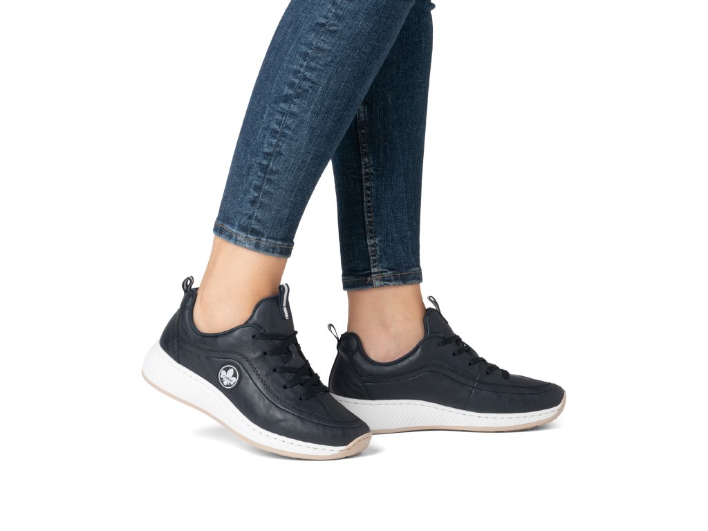 Dámské tenisky značky Rieker na pohodlné platformě se šněrováním zdobené logem po straně. Platforma je ideální pro tlumení nárazů.